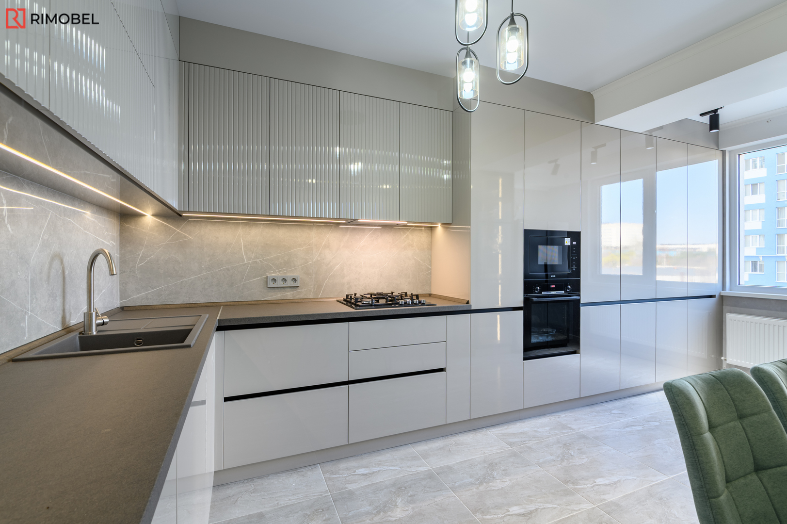 Bucătărie Modernă cu Finisaj Lucios – Chișinău, str. Matei Basarab 13