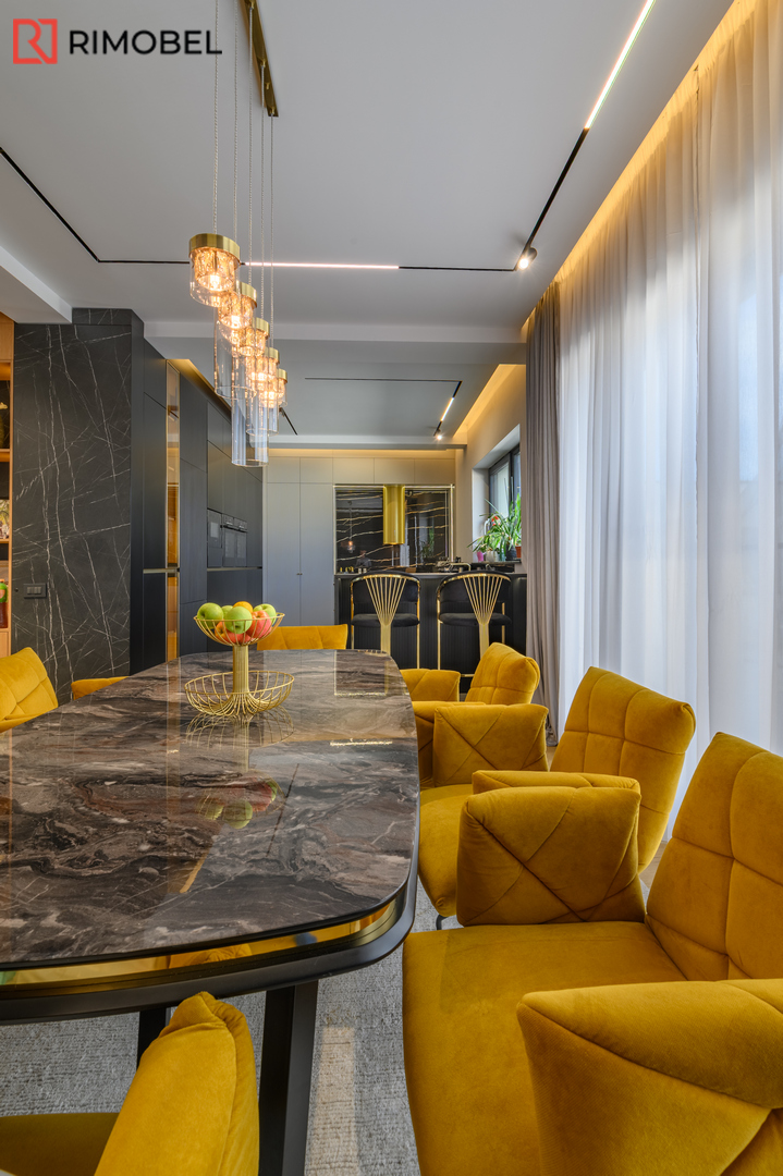 Este soluția ideală pentru familii care își doresc o bucătărie practică, dar cu un impact vizual puternic.