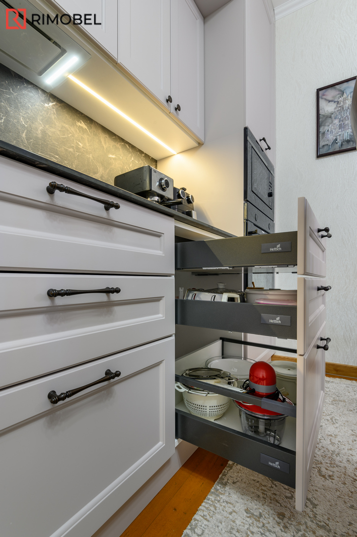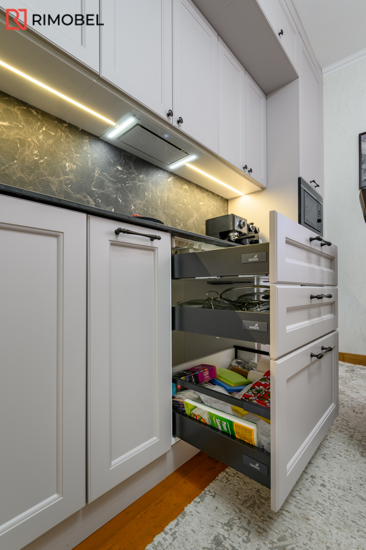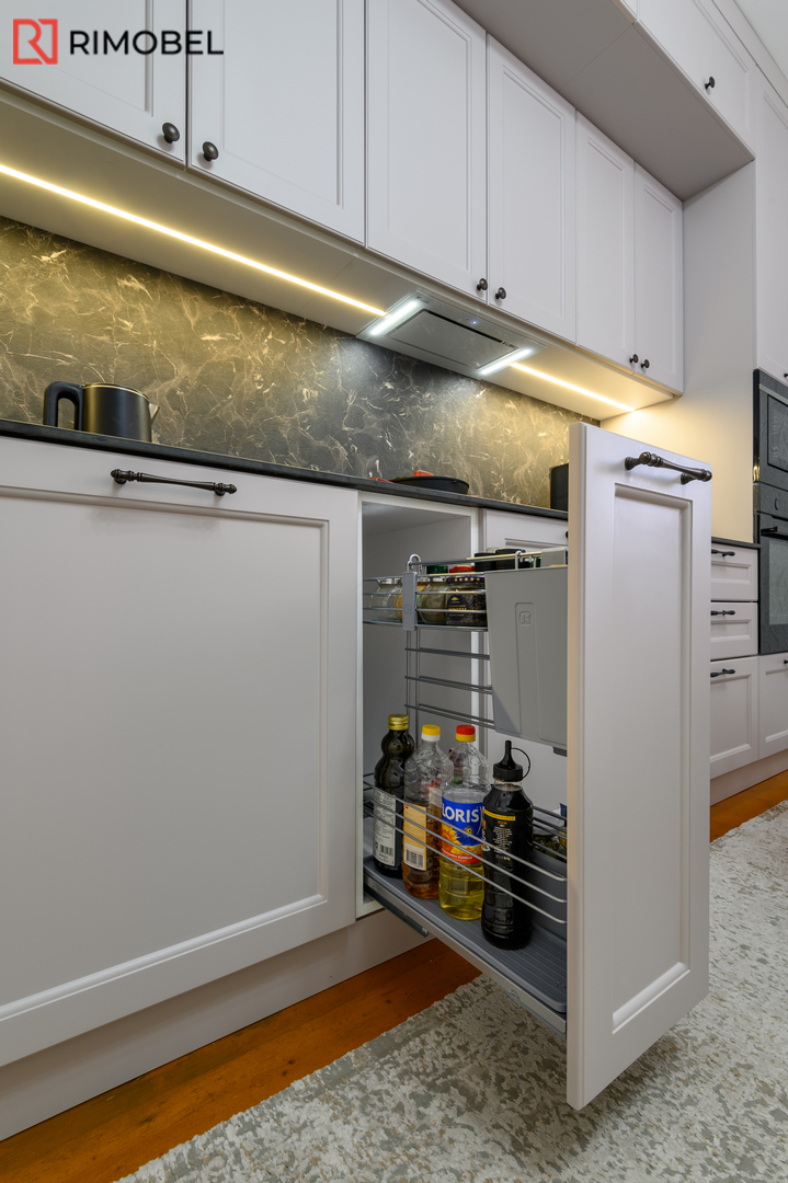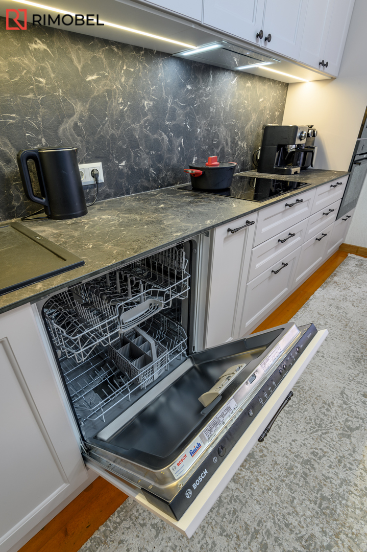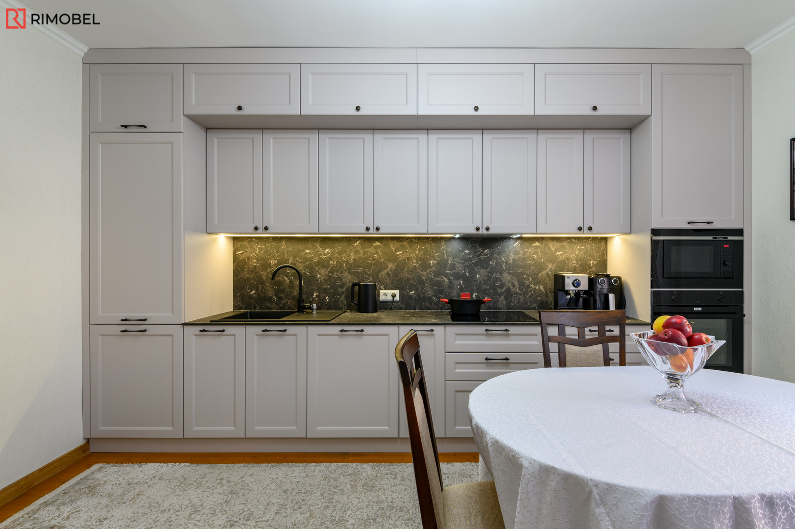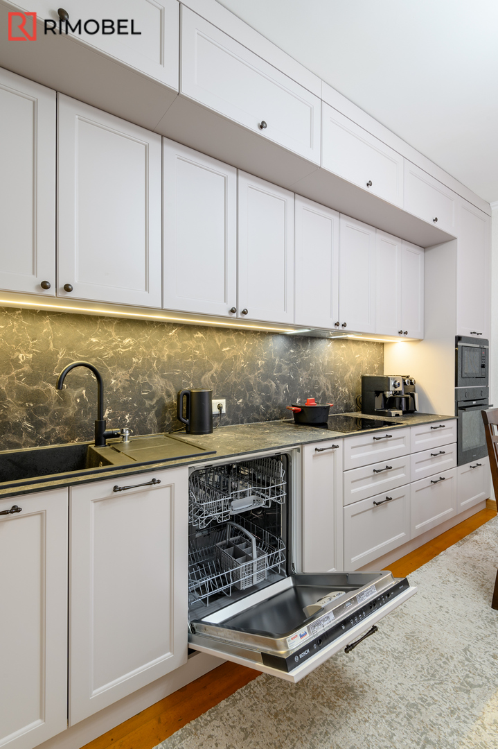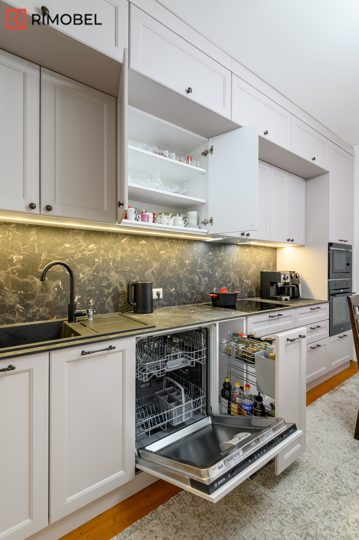 O interpretare modernă a eleganței clasice, această bucătărie neoclasică semnată Rimobel îmbină proporțiile simetrice cu tehnologia avansată, într-un design liniar compact, dar sofisticat. Gândită pentru locuințe urbane sau spații de dimensiuni medii, ea oferă tot confortul unei bucătării premium, fără excese inutile.