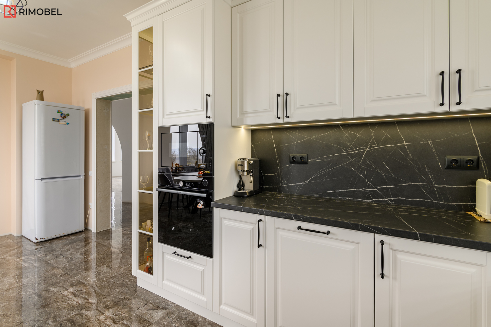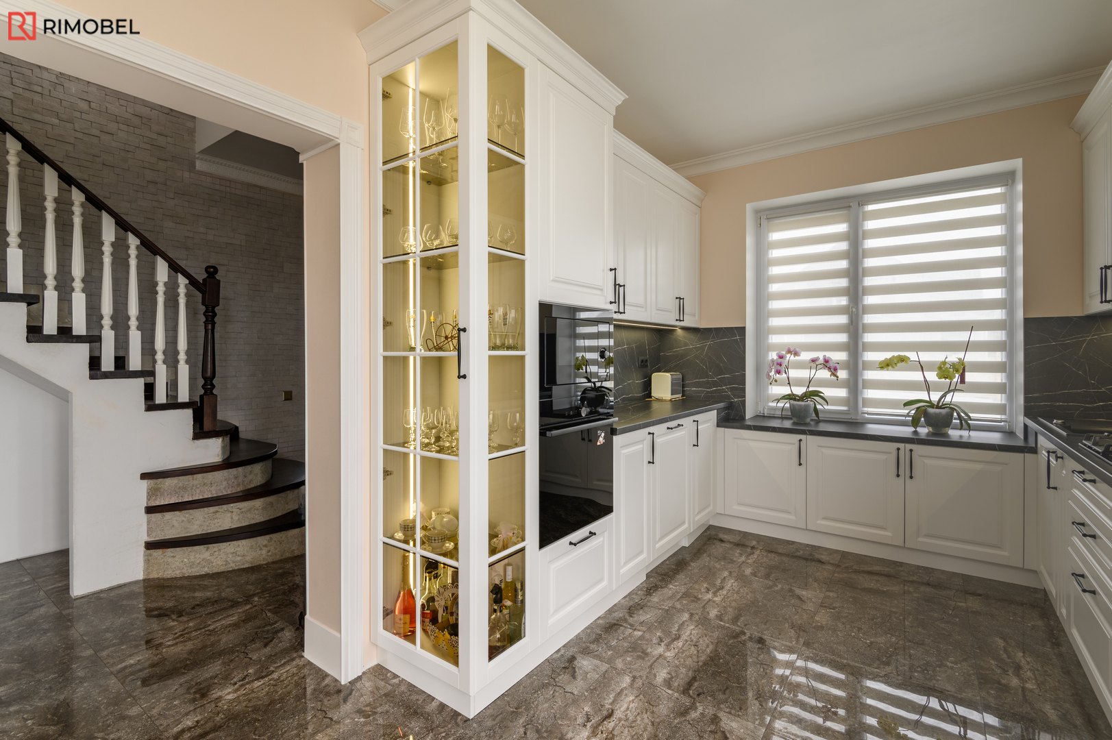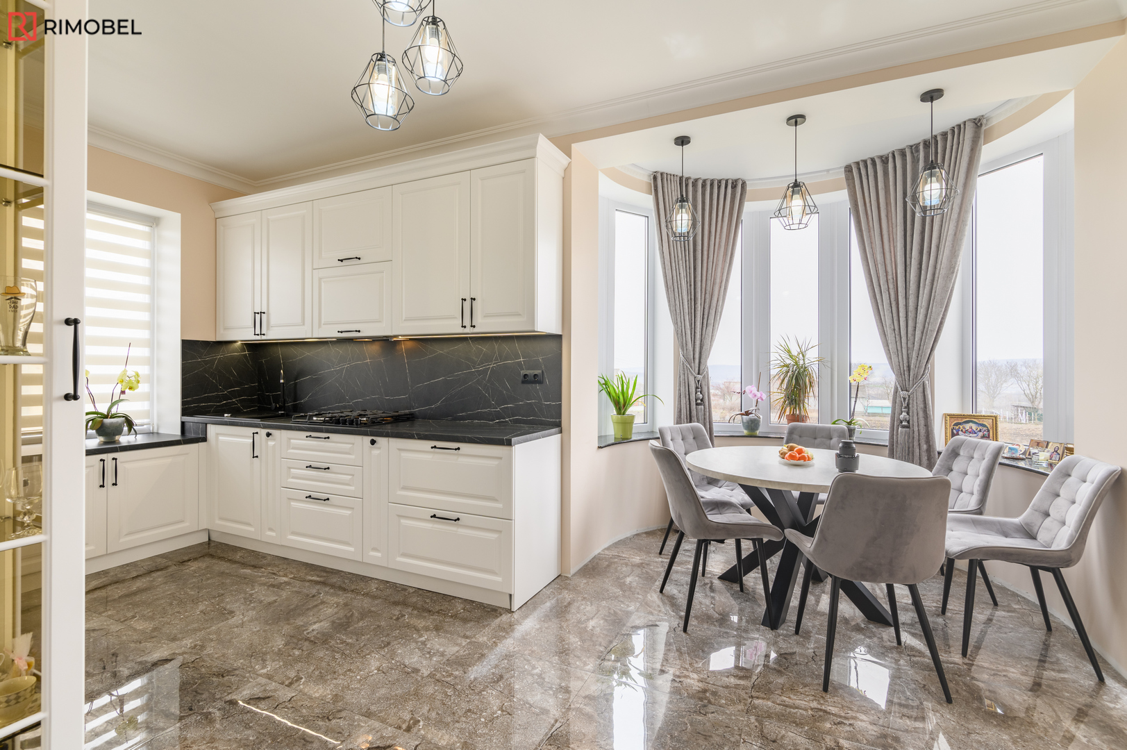 Bucătărie neoclasică Rimobel – Eleganță 3D, funcționalitate modernă și execuție 100% personalizată