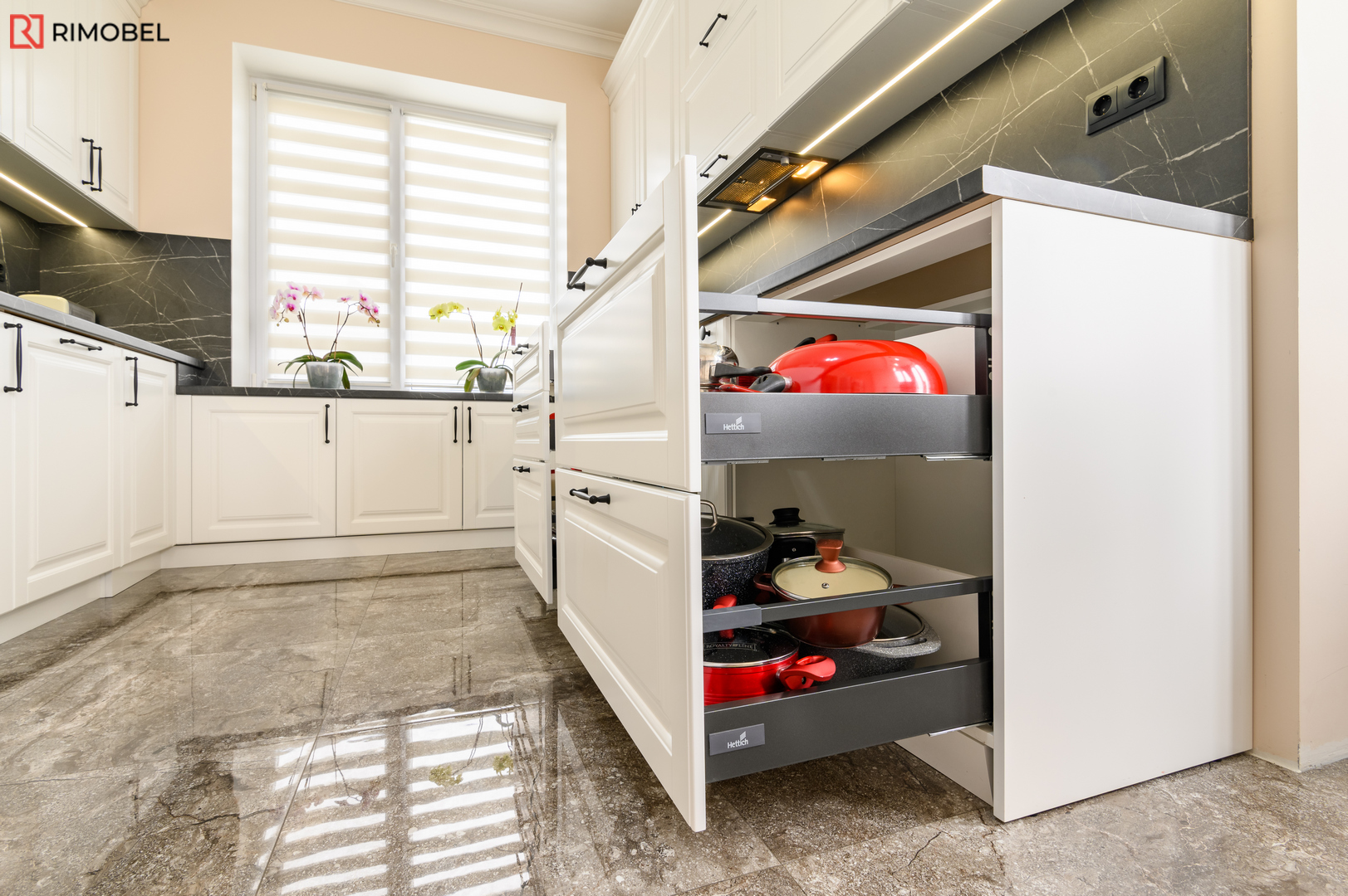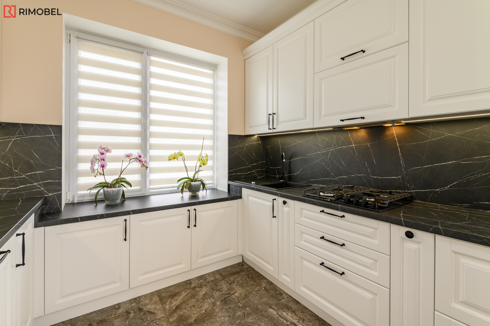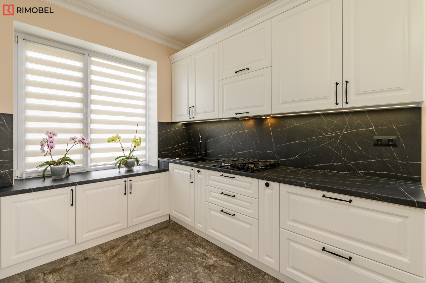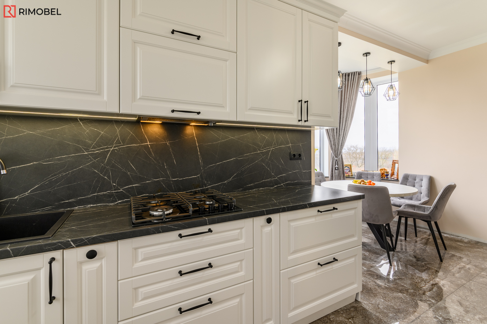 Bucătărie neoclasică Rimobel – Eleganță 3D, funcționalitate modernă și execuție 100% personalizată