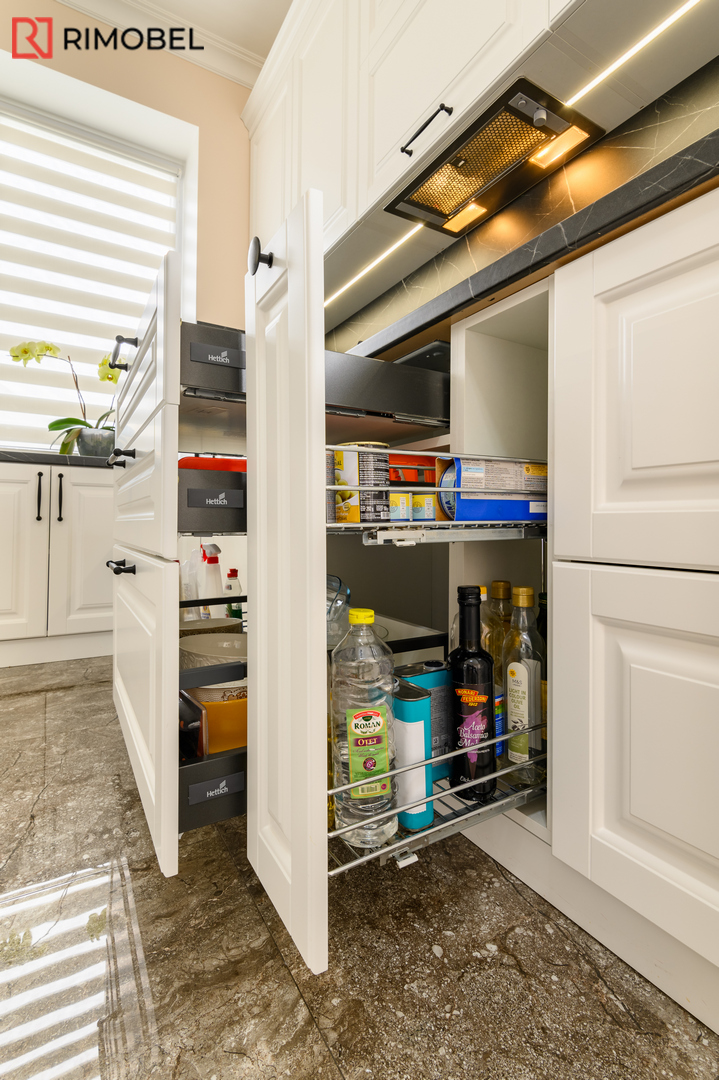 Inspirată din rafinamentul stilului clasic, dar gândită pentru exigențele moderne, această bucătărie neoclasică Rimobel aduce în prim-plan un design elegant, finisaje sculpturale și tehnologie ascunsă în detalii. Proiectată în formă de „U”, cu fațade MDF frezat 3D vopsit, bucătăria este ideală pentru cei care își doresc un spațiu practic, dar cu impact vizual deosebit.